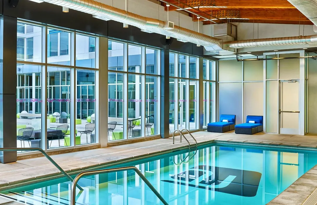 Leisure facilities include an indoor pool and a 24-hour fitness center where guests can work out at any time. The hotel provides a business center and multiple meeting spaces equipped with AV equipment.