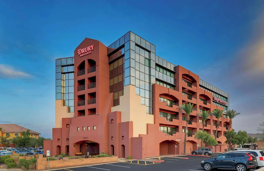 Drury Inn & Suites Phoenix Airport is a 3-star hotel offering convenient amenities including free hot breakfast and a 24-hour fitness center. Pets are welcome, making this Phoenix hotel suitable for travelers with pets. The hotel also features a year-round outdoor pool and complimentary shuttle service to Phoenix Sky Harbor International Airport, just 5 km away.