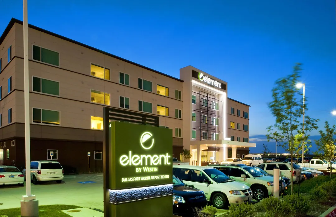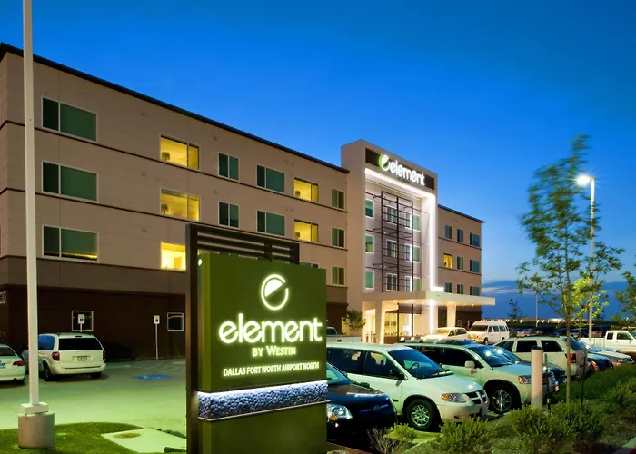Element Dallas Fort Worth Airport North features modern accommodations and is a 3-star hotel with a 7.9/10 rating on Booking.com. It offers amenities such as a sparkling saline pool, fitness center, and a complimentary 24-hour airport shuttle. Guests can enjoy a complimentary Rise breakfast and Relax reception.