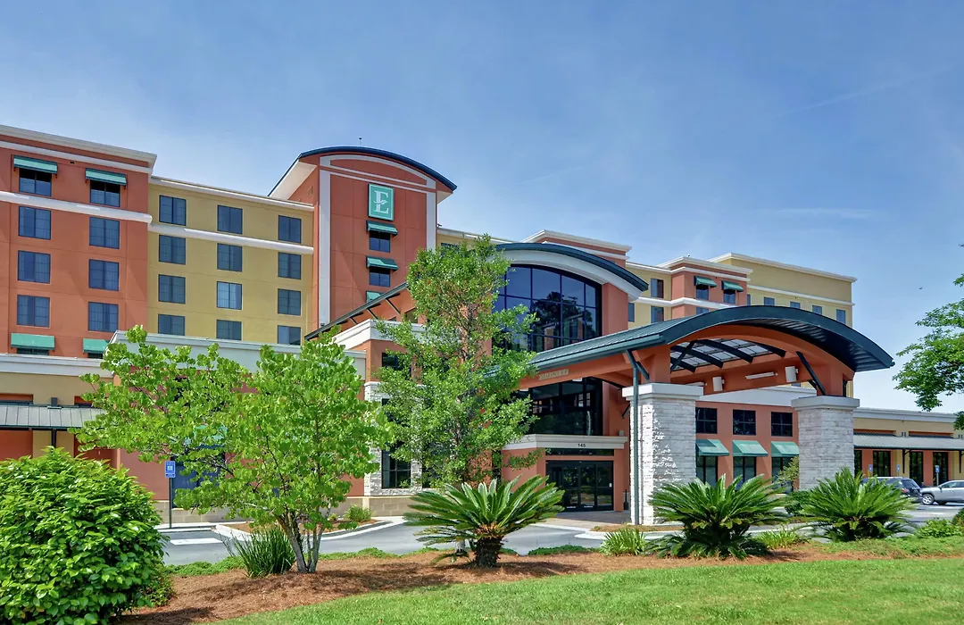 Embassy Suites Savannah Airport offers a convenient home base with modern amenities for both business and leisure travelers. This pet-friendly, 4-star hotel provides a made-to-order breakfast, an indoor pool, and complimentary airport shuttle service.