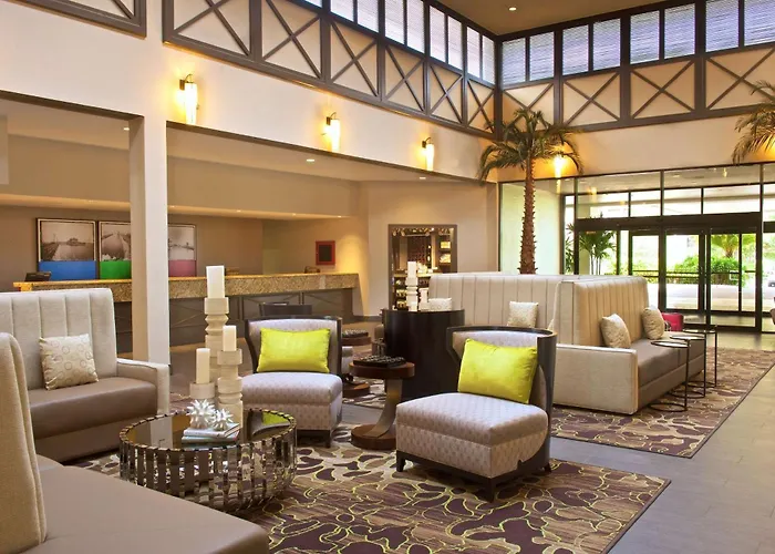 Hilton Tampa Airport Westshore, a 4-star Tampa hotel with an 8.0/10 rating on Booking.com, features an outdoor pool, fitness center, and business facilities. It offers convenient airport shuttle services and dining options including Café Breeze and the Bay Breeze Lounge.