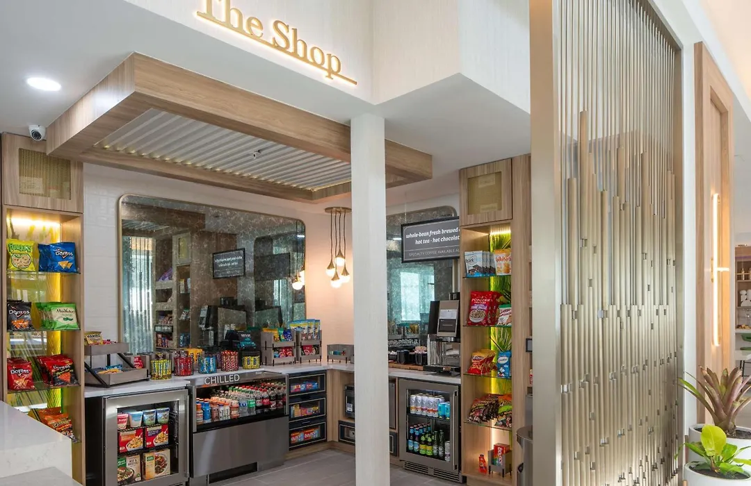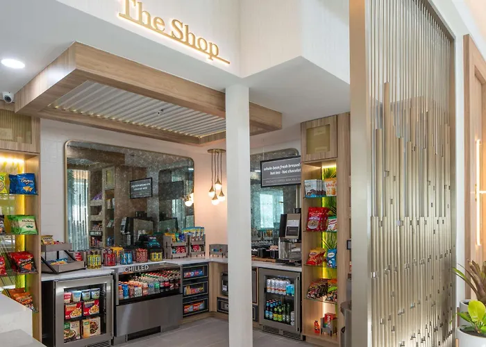 Dining options include the Great American Grill restaurant, which serves a full cooked-to-order breakfast and offers dinner service. Guests can find snacks and beverages at the Pavilion Pantry.