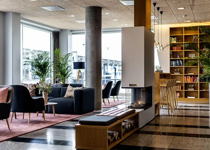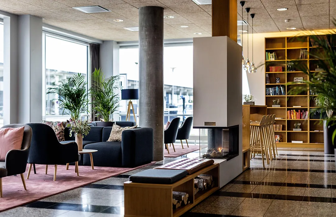 Aalborg Airport Hotel is a modern 4-star hotel with eco-friendly credentials, located right next to Aalborg Airport. It features high-quality amenities including a rooftop terrace with panoramic views, a cozy lounge with a fireplace, and an inviting restaurant serving organic and local ingredients.