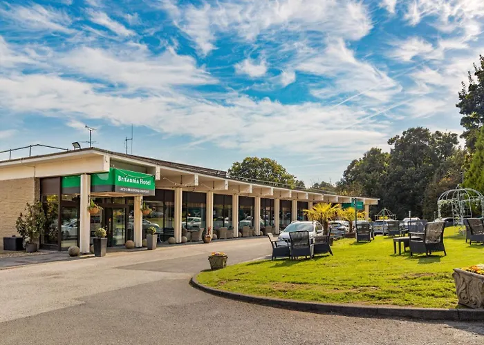 Britannia Leeds Bradford Airport Hotel & Spa is a 3-star hotel set in 1 hectares of landscaped grounds with panoramic views of the Yorkshire Dales. The hotel offers a range of amenities including a restaurant, café bar, and leisure facilities. It also provides accommodation options convenient for travelers heading to Leeds Bradford Airport, just 4.5 km away.