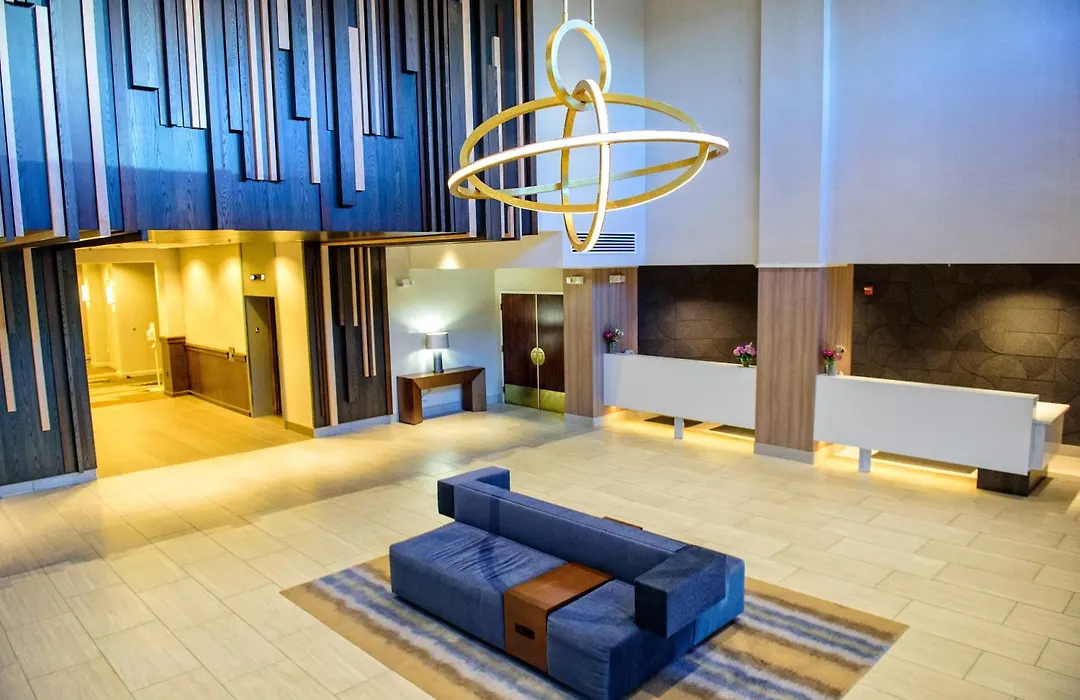 Guest rooms at Crowne Plaza Dulles Airport include modern amenities such as free Wi-Fi, flat-screen TVs, and blackout curtains. Some accommodations offer natural light and seating areas, ensuring a comfortable stay. Wheelchair accessible rooms are available, equipped with features for individuals with disabilities.