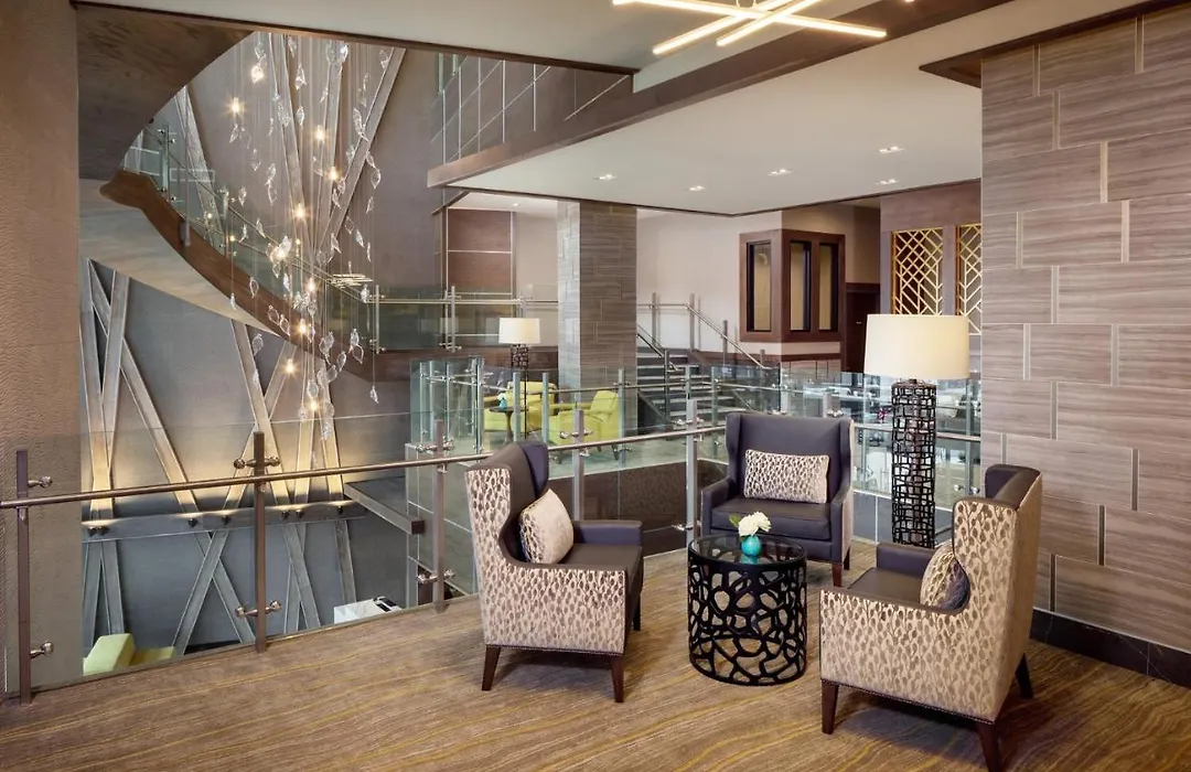 The contemporary guest rooms include floor-to-ceiling windows, flat-screen TVs, and spa-inspired showers. Guests also benefit from luxury bath amenities and complimentary Wi-Fi for productivity.