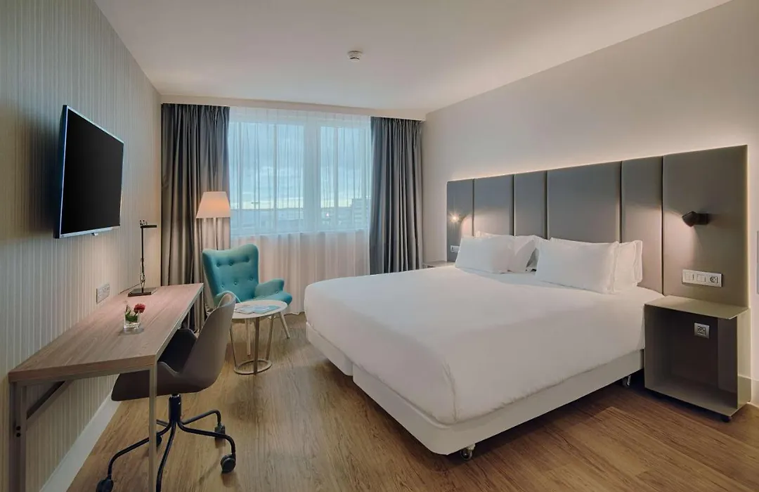 The hotel offers 148 contemporary and minimalist bedrooms, including standard rooms, superior rooms, and junior suites. Some rooms provide views of the take-off and landing runways, and all accommodations feature a fully stocked minibar, king-sized beds, fast, free Wi-Fi, and tea and coffee facilities.
