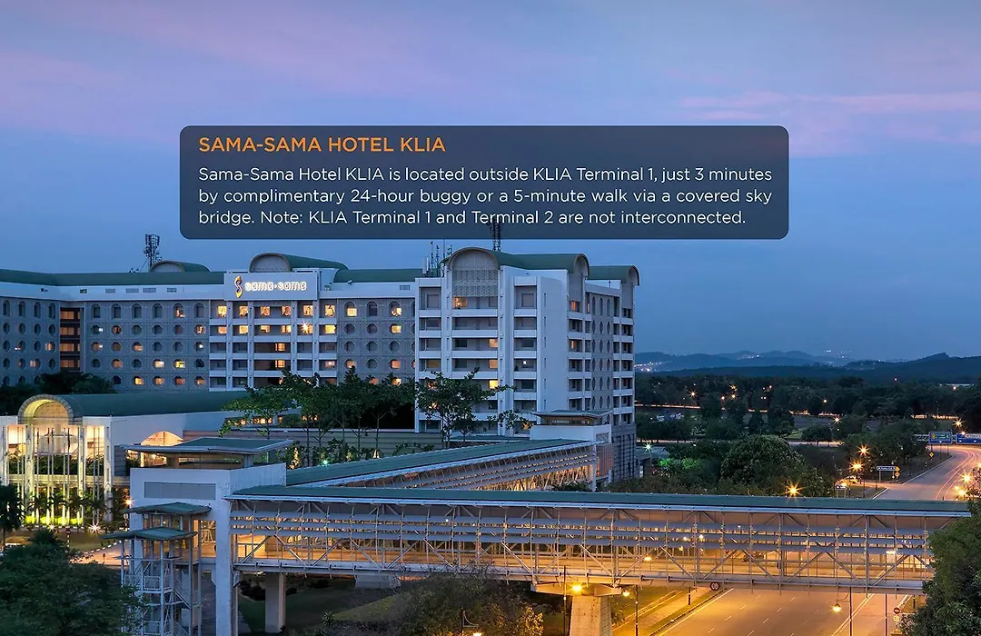 Sama Sama Hotel Klia, a five-star hotel rated 9.0/10 on Booking.com, offers 442 elegantly designed rooms with stunning airport views. This Sepang hotel features a 24-hour buggy service to KLIA Terminal 1 and is positioned just minutes away from Kuala Lumpur International Airport.