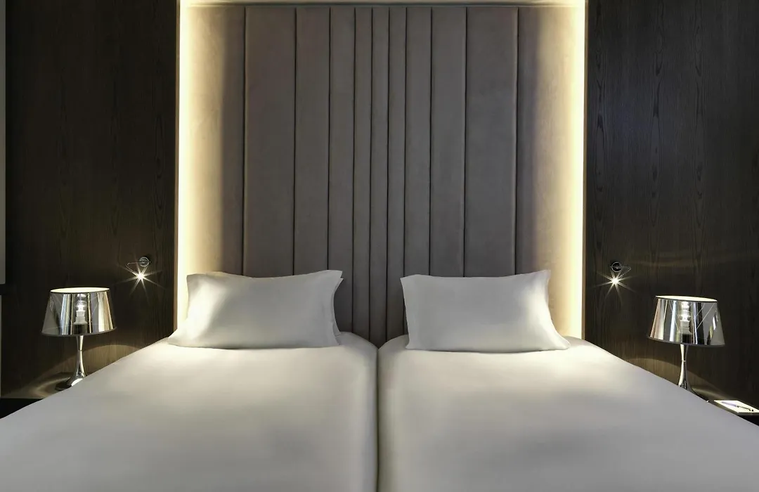 The hotel features a serene indoor swimming pool and a cozy sun-lit fitness area on the 9th floor with Technogym equipment. Guests can relax with Cinq Mondes face and body treatments after workout sessions.